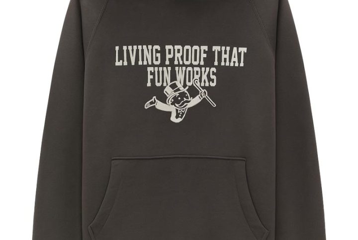 پشت هودی طرح صفحهی بازی مونوپولی رو شبیه به کوک دوزی چاپ کردیم و جلوش هم مارک پارچهای با تصویر یکی از کارتهای بازی دوختیم.